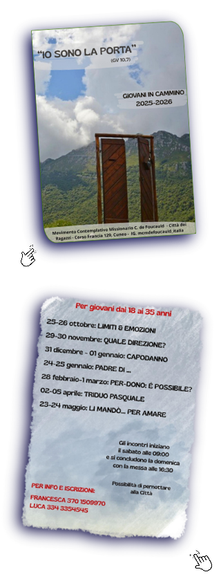 Il percorso è guidato da alcuni fratelli e sorelle della Comunitá con la collaborazione di alcuni amici e si svolgerá nella sede centrale della Comunitá a Cuneo.